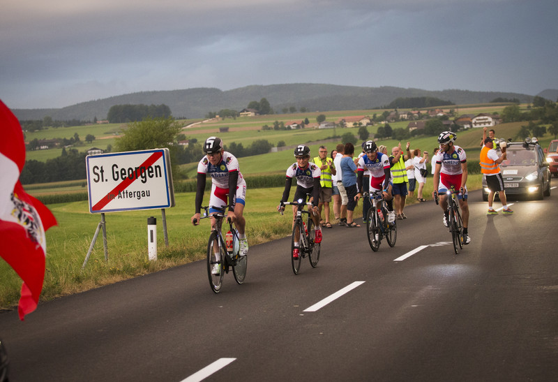 Dass dieser Rekord nicht von ungefähr kommt, zeigt die akribische Planung und Vorbereitung der gesamten Mannschaft rund um Teamchef Josef Stadlbauer. Dieser hat 22 Betreuer für seine vier Fahrer aufgestellt, um dieses einjährige Projekt zu realisieren. Gleich sieben Fahrzeuge begleiteten die Mannschaft auf ihrem Weg rund um Österreich und trugen dazu bei, diesen Rekord aufzustellen. Thomas Oberngruber, der Bergspezialist im Team, sieht in der gewissenhaften Planung und dem reibungslosen Ablauf innerhalb der Betreuer den Schlüssel zum Erfolg. Begeistert zeigt sich der Mühlviertler auch von der Stimmung an der Strecke: „Es war ein irrsinnig geiles Gefühl, durch die vollen Fanzonen zu fahren.“ Vor allem in ihrer Heimat in Julbach warteten über 1.000 Fans und sorgten für Volksfeststimmung in der ersten Nacht des Rennens.